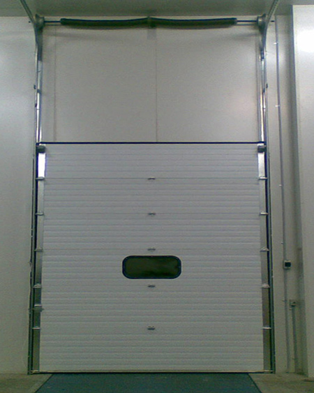 Hinges support the rollers and guide the door along vertical and overhead tracks. Consequently, the door opens and closes smoothly without swinging outward. Additionally, this motion protects nearby equipment and shelving.